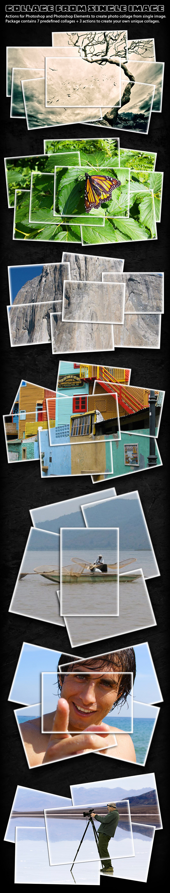 Actions for Adobe Photoshop and Photoshop Elements which creates photo collage from single image/photograph.